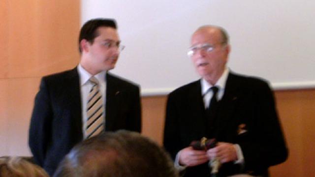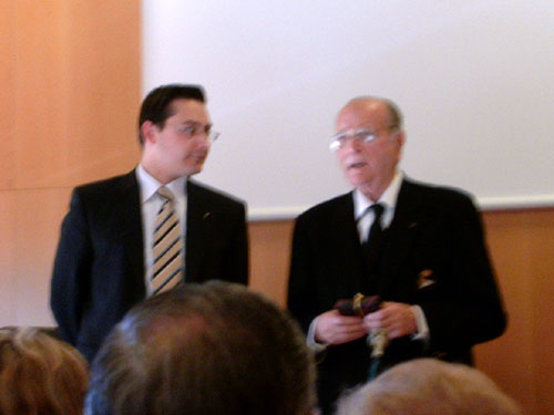 En mayo de 2004 organizamos una charla-coloquio con D. Gerardo Fernández Albor, con motivo de la ampliación de la Unión Europea a diez nuevos estados. Los estudiantes del módulo le hicieron entrega de una medalla, en agradecimiento por su contribución a la ampliación de la Unión Europea, como diputado europeo y como presidente del Comité Español por la Unión Paneuropea.